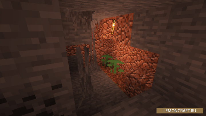 Мод на красивые пещеры Better Underground Reborn в процессе генерации пещер внесет новые элементы, которые украсят и сделают ваши исследования пещер более яркими и интересными. В основном на стенах пещер появятся различные наросты, а в самих пещерах вы сможете встретить различные растения.